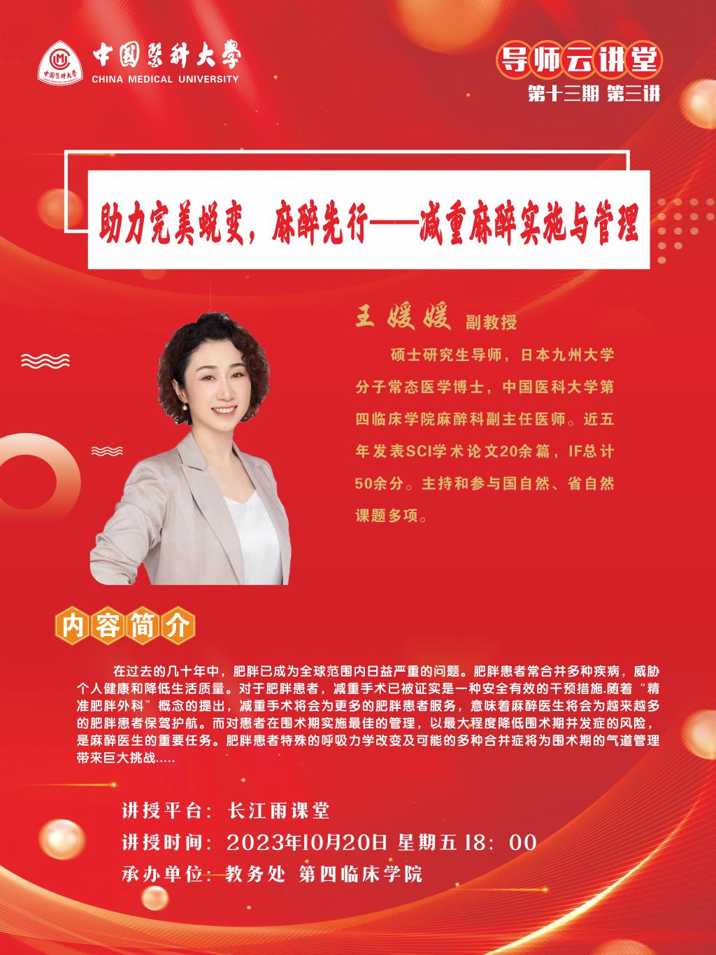 中国医科大学导师云讲堂第十三期第三讲活动由教务处联合中国医科大学第四临床学院举行。现将活动安排通知如下: