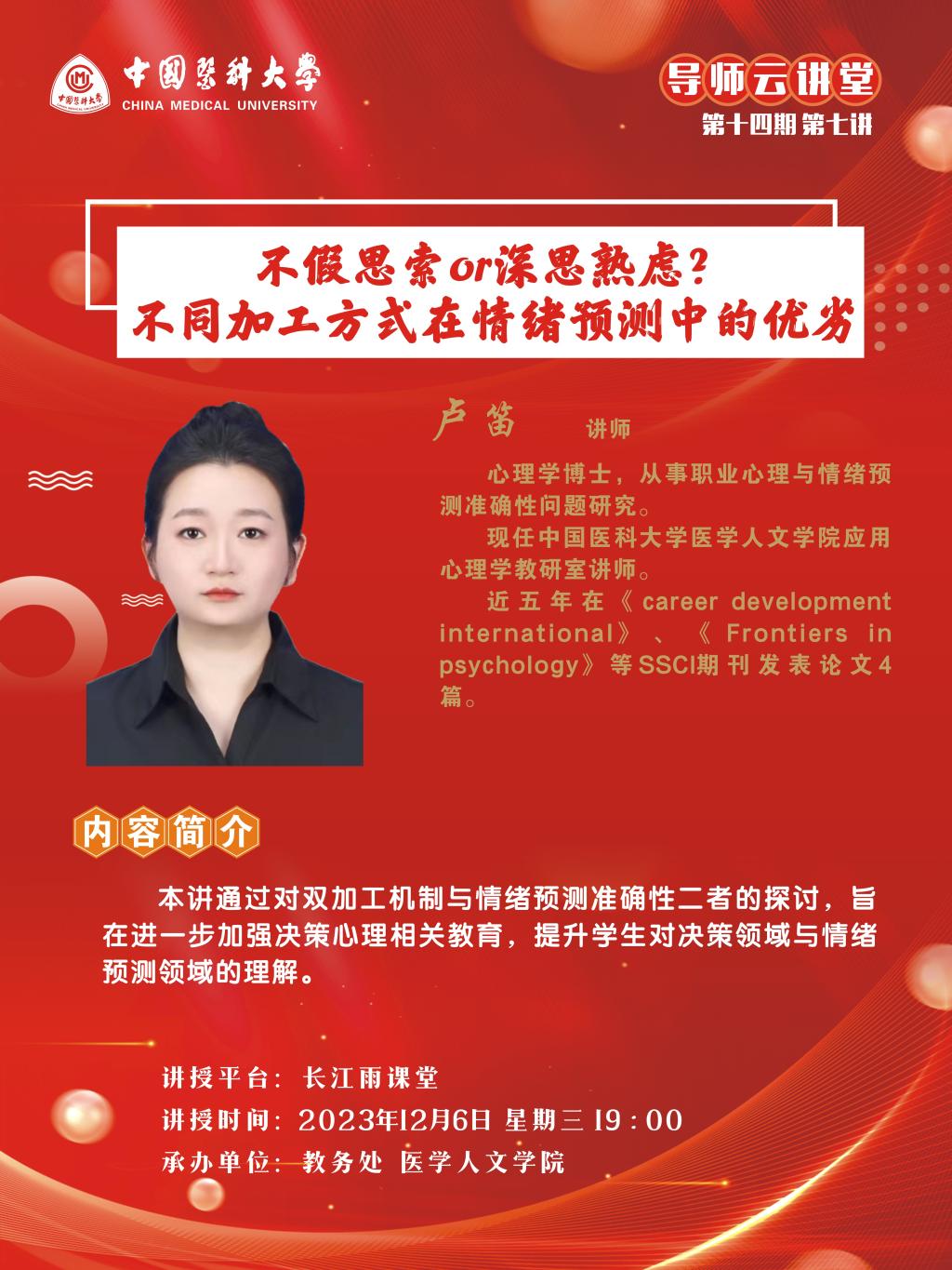 1.主讲人:医学人文学院 卢笛 讲师