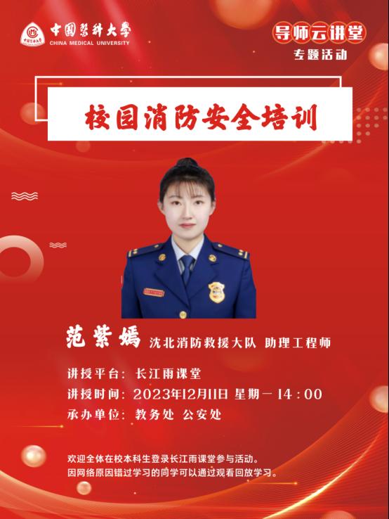 中国医科大学“导师云讲堂”之“校园消防安全培训”专题活动通知