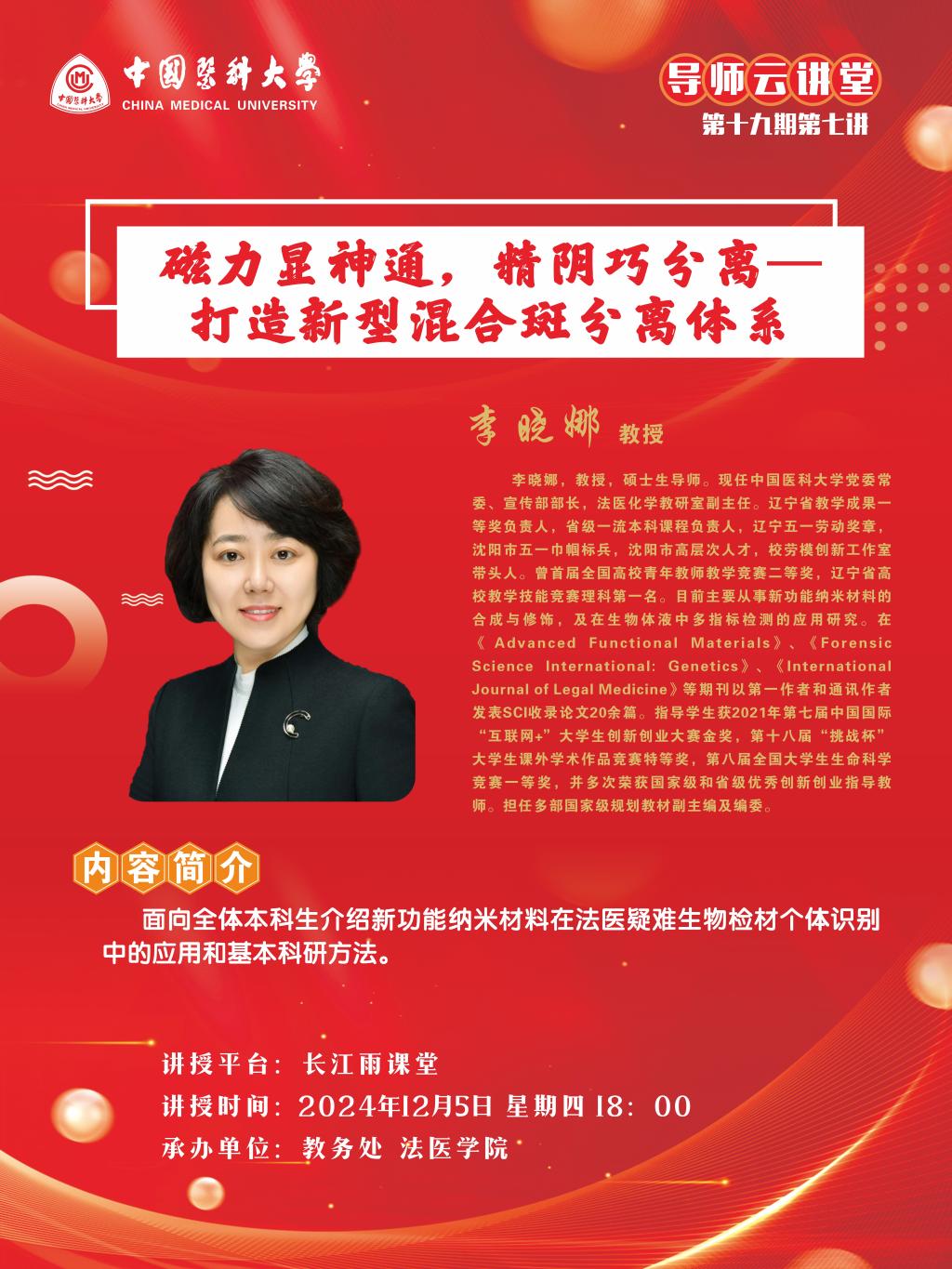 中国医科大学导师云讲堂第十九期第七讲活动由教务处联合法医学院举行。现将活动安排通知如下: