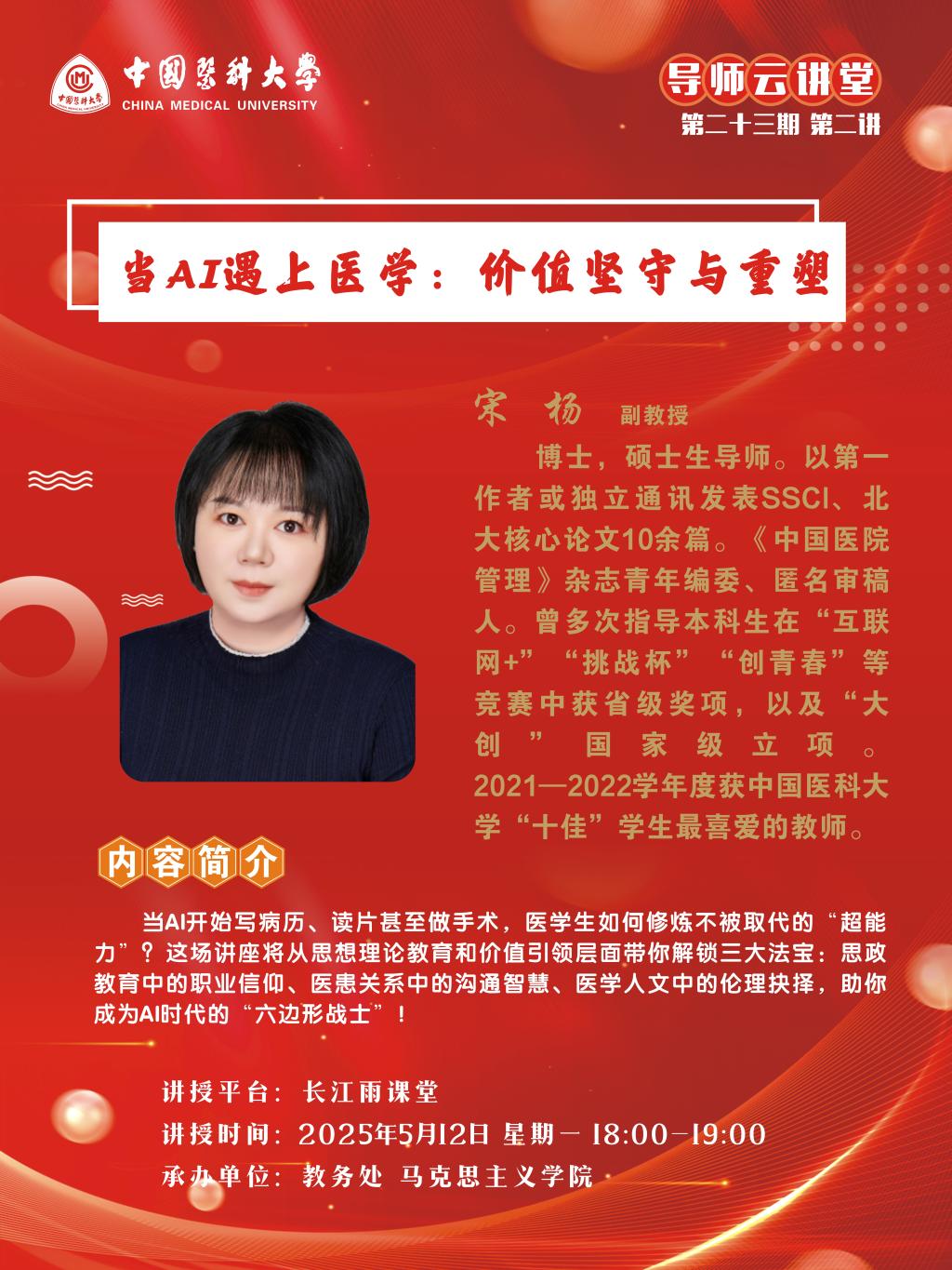 中国医科大学导师云讲堂第二十三期第二讲活动由教务处联合马克思主义学院举行。现将活动安排通知如下: