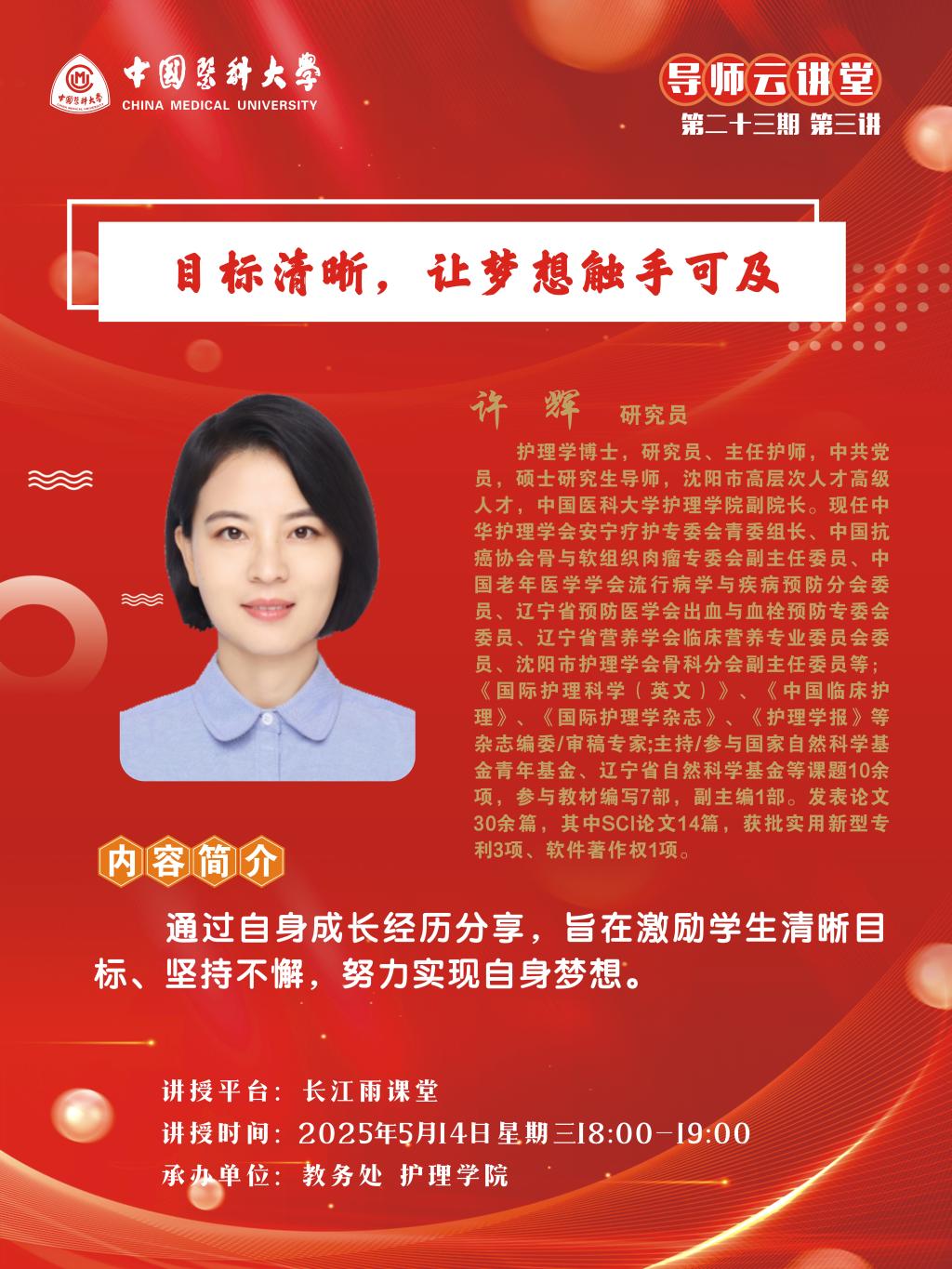中国医科大学导师云讲堂第二十三期第三讲活动由教务处联合护理学院举行。现将活动安排通知如下: