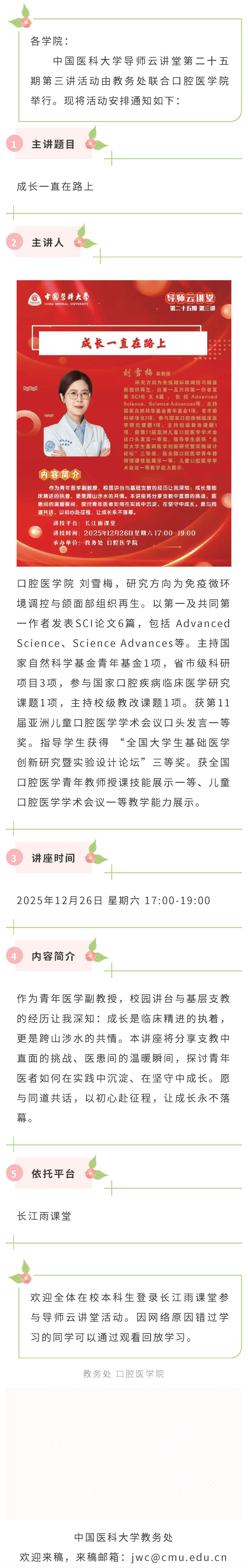 ”导师云讲堂“第二十五期第三讲活动通知