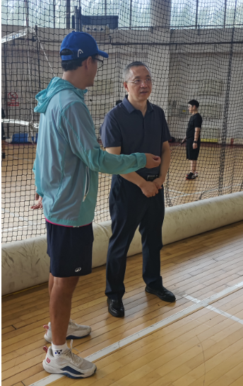 曲波校长先后深入乒乓球、篮球、羽毛球等课程教学现场,认真聆听并观摩课堂,详细了解教学内容、师生互动及学生参与情况,并查阅了相关课程教学文件。他对体育教研部在教学规范和课程质量建设方面的严格要求和显著成效给予了充分肯定。在此基础上,曲波校长对体育教学的组织与考核提出了多项指导性意见,强调课程安排需科学统筹,将体能训练与专项技能有机结合,既要注重训练的强度与规范性,也要确保学生的安全与良好参与体验。同时,他指出考核方式应体现全面性和发展性,不仅要考查学生的技能掌握情况,还要重视过程评价和成长记录,引导学生通过持续锻炼,熟练掌握一项运动技能,并养成终身体育的观念。
