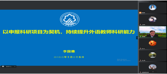 李国德处长针对当前大学公共外语教师教学任务重和科研相对较弱的现状,分析了大学外语教师搞好科研工作的路径,并重点论述了外语教师申请科研项目过程中该如何选方向、定选题、组队伍等问题。