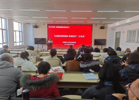部署会后,为坚决落实师德师风第一标准,提升师德师风建设水平,外语教研部开展了以《弘扬教育家精神 争做时代“大先生”》为主题的2025年第一期师德师风培训学习。王奕萍主任带领全体教师认真学习了《习近平致全国优秀教师代表的信》,并深刻领会教育家精神的丰富内涵。