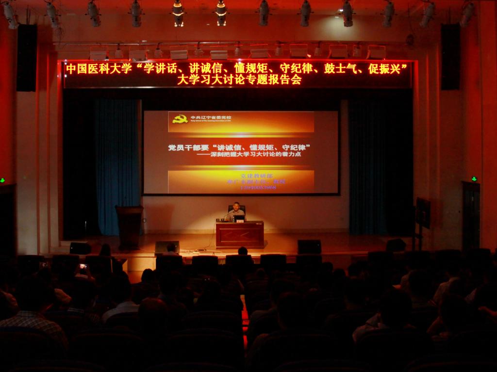 为落实省委开展以“学讲话、讲诚信、懂规矩、守纪律、鼓士气、促振兴”为主题的大学习大讨论,9月16日下午,学校在综合楼第一报告厅举行“学讲话、讲诚信、懂规矩、守纪律、鼓士气、促振兴”大学习大讨论专题报告会。邀请市委讲师团成员、中共辽宁省委党校党建教研部副主任,教授,法学博士,辽宁省党建研究会特约研究员,辽宁省百千万人才工程“百层次”人才牟广东作《党员干部要“讲诚信、懂规矩、守纪律”——深刻把握大学习大讨论的着力点》专题报告。校长赵群、副校长于晓松,全校正副处级干部、正副处级调研员参加会议。会议由副校长于晓松主持。