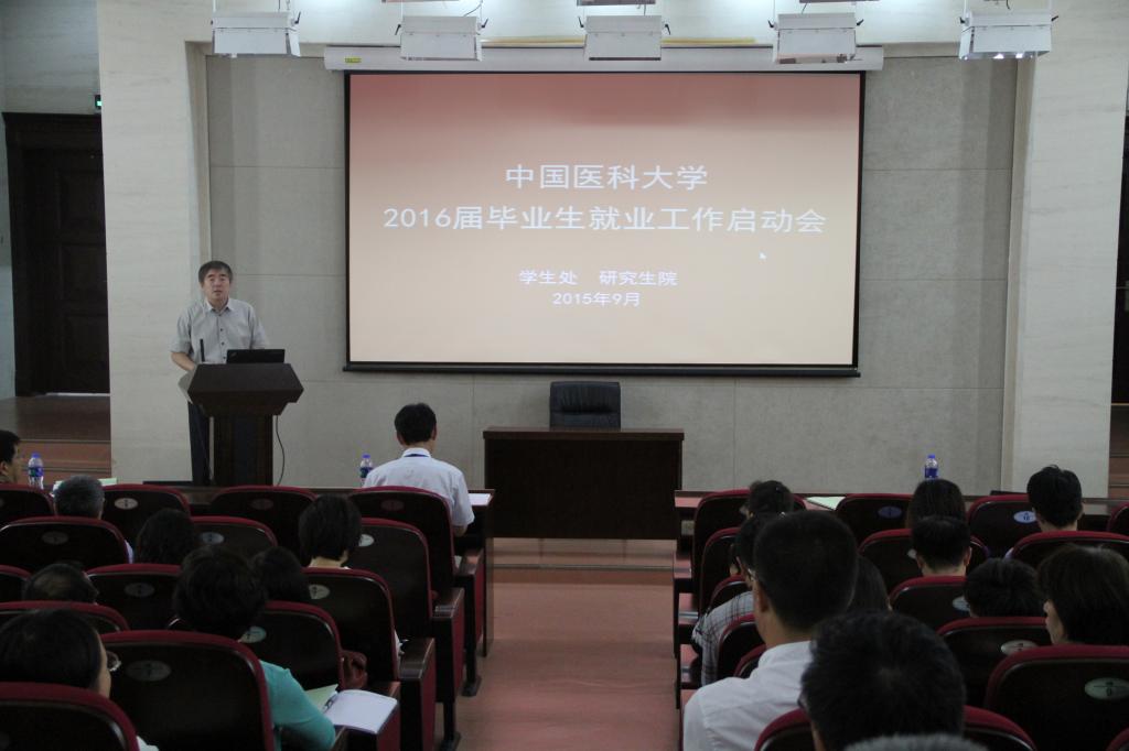 9月21日,中国医科大学2016届毕业生就业工作启动会在综合楼第二报告厅召开,副校长于晓松,学生处、研究生院相关职能部门领导和老师,各院系党政负责人和就业工作小组成员等80余人参加了会议。会议由学生处处长田伟主持。