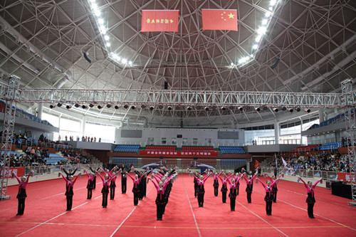 为进一步贯彻落实国务院颁布的《全民健身计划纲要》,推动全民健身活动在我校深入开展,丰富和活跃员工的业余文化生活,提高员工的身体素质,10月30日中午,由校工会举办的“中国医科大学首届职工工间操(健排舞)展演赛”在我校文体馆隆重举行。来自全校10个二级学院的9支代表队、近300名员工参加了大赛。全校各二级学院党政工负责人、部分职工及学生等两千余人观看了此次大赛。