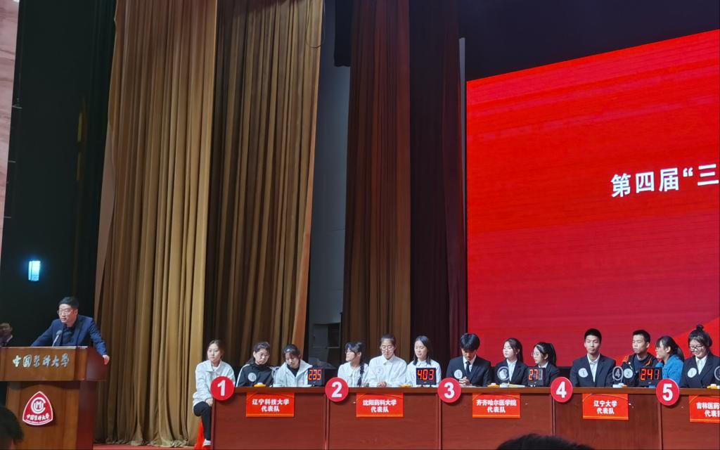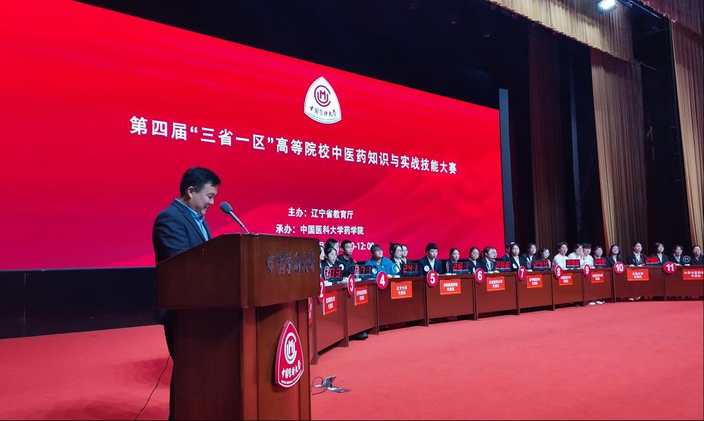 10月29日,由辽宁省教育厅主办,中国医科大学药学院承办,中药与生药学教研室组织实施的第四届“三省一区”高等院校中医药知识与实战技能大赛在中国医科大学沈北校区科学活动艺术中心举行。辽宁大学、大连大学、大连医科大学、内蒙古医科大学等十二所高校参加了此次大赛。经过七轮激烈角逐,沈阳药科大学代表队、中国医科大学代表队与大连医科大学中山学院代表队斩获特等奖。中国医科大学党委常委、副校长刘莹教授出席大赛开幕式并致辞。