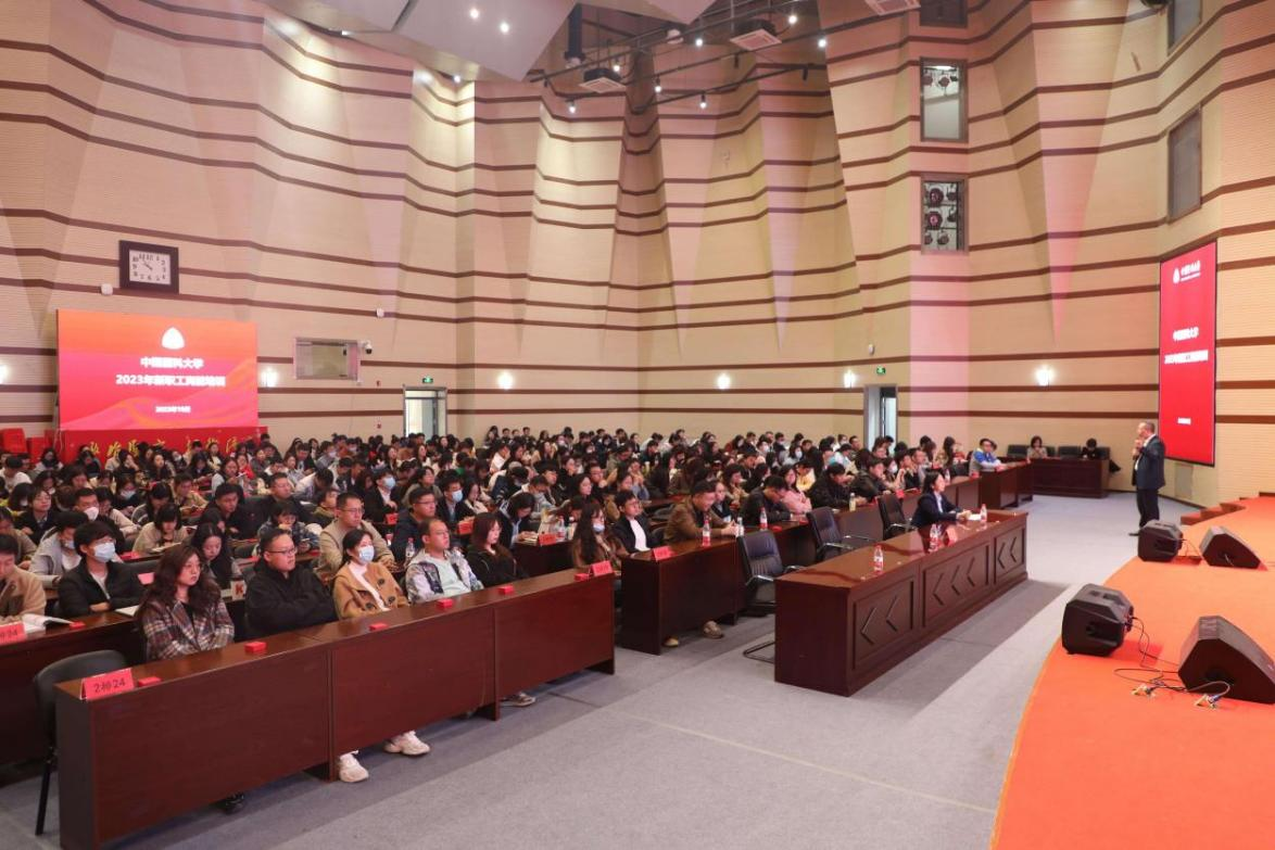 岗前培训第一课由党委常委、副校长曲波主讲。他以《学校史 知校情 做有理想有信念的新时代仁心医者》为题,通过与现场参会的新教职工交流互动的形式,从光辉历程、今日校情、时代使命三个方面概述了学校92年的办学历史。围绕人才培养、科学研究、社会服务、文化传承创新、国际合作与交流等角度介绍了学校的基本情况。曲波带领大家学习了习近平总书记致中国医科大学建校90周年重要贺信,一起分享了对于“赓续红色基因,不负时代使命,做情系人民、服务人民、医德高尚、医术精湛的仁心医者”的理解和感悟,从“培养什么人”“怎样培养人”“为谁培养人”的角度,鼓励新入职教职工努力成为有理想、有信念的新时代仁心医者,奋力开拓国内一流、国际知名医科大学高质量发展的新局面,为早日实现教育强国目标、以中国式现代化全面推进中华民族伟大复兴作出应有贡献。