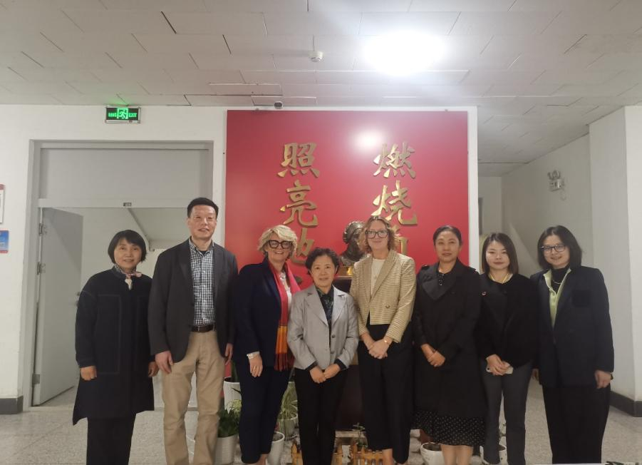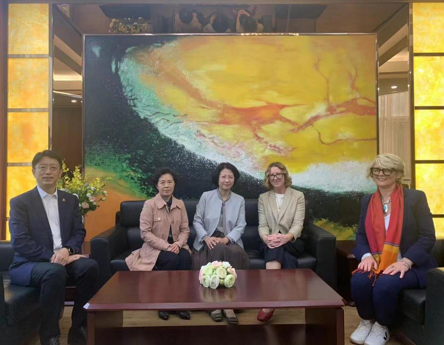 10月9日上午,英国格拉斯哥卡利多尼亚大学副校长道恩·安德森、健康与生命科学学院副院长凯伦·汤姆森、中国国际事务专员谢佳玉一行来校访问,党委常委、副校长刘莹会见代表团,国际事务部、护理学院负责人参加会见。