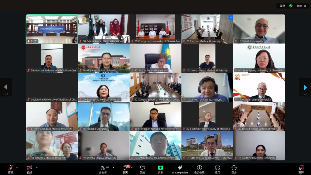 平台理事长单位代表王振宁教授对平台2024年工作进行总结并发布2025年工作计划。王振宁指出,2024年以来合作平台规模不断壮大,影响力稳步攀升。举办了国际医学教育大会,加强了人员往来和专业交流。通过在平台框架下开展成员单位间的密切交流合作、持续开展“云课堂”项目、开展“副理事长单位轮值月”“理事单位轮值月”活动等,实现了成员单位间的务实合作。未来合作平台将进一步提高连通性和共享性,继续打造开放型合作平台,继续高质量办好教育大会,推动人类卫生健康共同体建设取得新突破。理事单位共同观看平台七周年纪录片《笃定信念,携手前行——推进高质量共建“一带一路”行稳致远》并合影留念。平台秘书长、中国医科大学副校长钟红珊教授主持了会议。