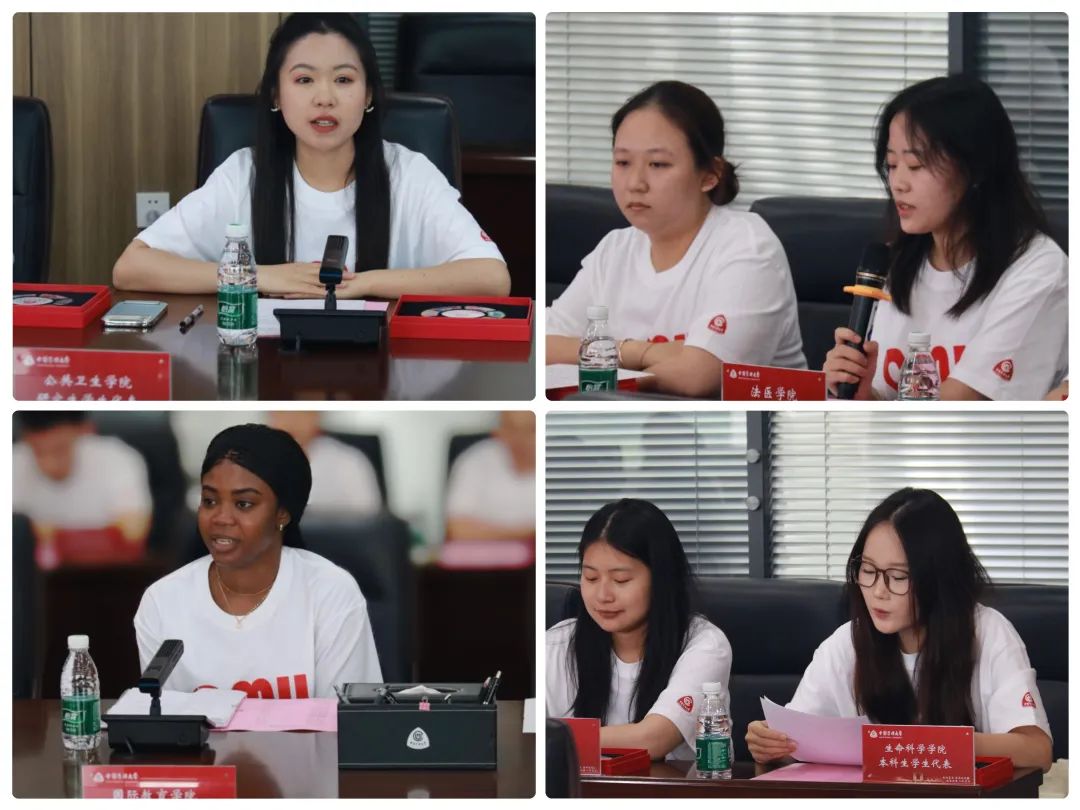 党委学生工作部、党委研究生工作部、国际教育学院、相关职能部门负责人及22名本科生、研究生、留学生毕业生代表参加了会议。