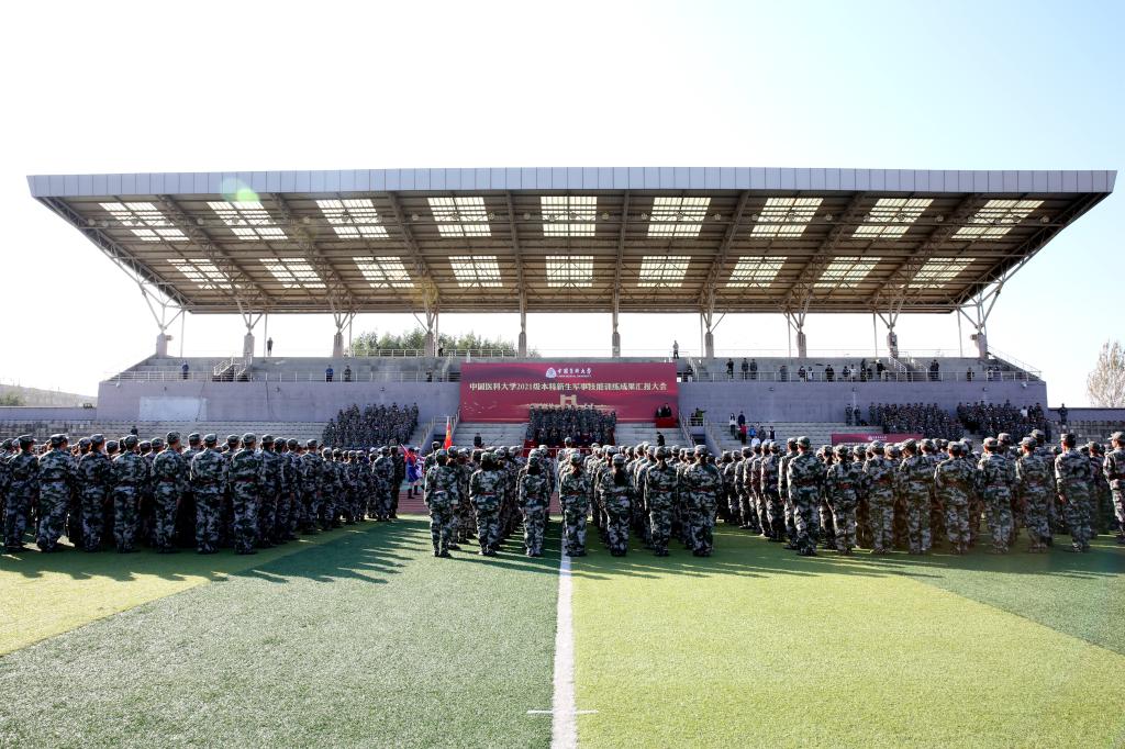 厉兵秣马磨利剑,又是沙场点兵时。10月23日下午,学校2021级(107期)本科新生军事技能训练成果汇报大会在沈北校区体育场举行。党委副书记、军训团政委闫灵均,党委常委、副校长王振宁,党委常委、组织部部长戴旭,省教育厅体育卫生与艺术教育处副处长刘冬青,省军区战备建设局军训办公室潘凯旋参谋,武警第一机动总队机动第二支队中校杨晓亭、参谋宋学通上尉出席大会。