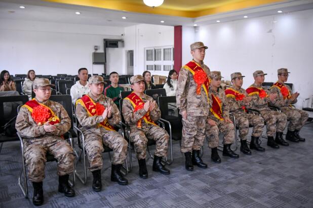 校“预征班”学生代表,口腔医学院郭婷婷同学结合自身入伍和退伍复学经历,寄语新战友们在火热的军营里继续书写红医学子的青春华章。