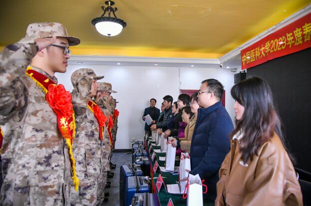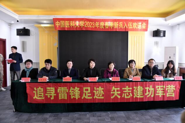 3月15日下午,中国医科大学在于洪区东辉国防教育基地举行2023年度春季入伍新兵欢送会。校党委学生工作部、武装部、护理学院、智能医学学院、基础医学院、法医学院、中英联合学院、临床二系、药学院等入伍学生所在院系负责学生工作相关同志及校“预征班”学生代表参加会议。欢送会由武装部邓博主持。