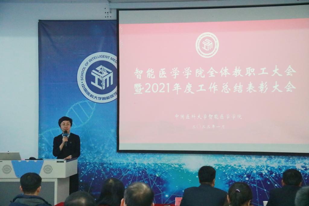 2022年1月5日下午,智能医学学院全体教职工大会暨2021年度工作总结表彰大会在理工楼200会议室召开,中国医科大学党委常委刘群清出席了会议。会议由学院党委书记黄山杉主持。