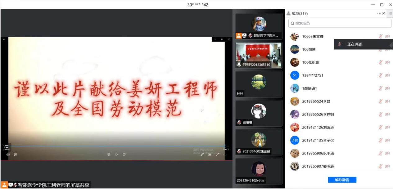 在报告后的互动环节中,学生播放了精心制作的小视频作为劳动节特别礼物,表达红医学子心声,表达对姜妍以及像她一样的全国劳动模范的深深敬意。
