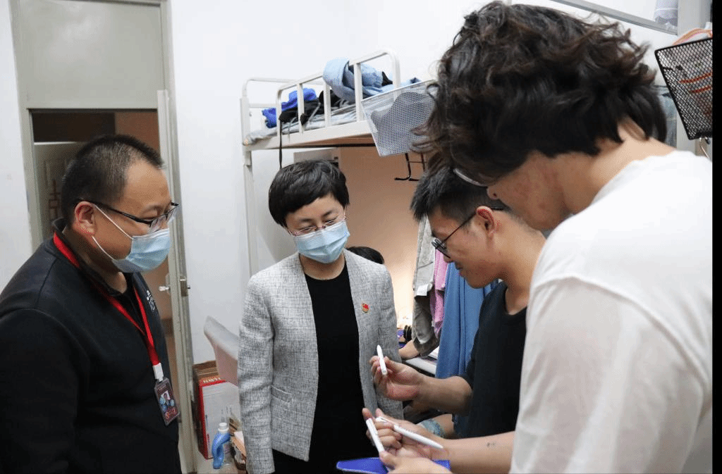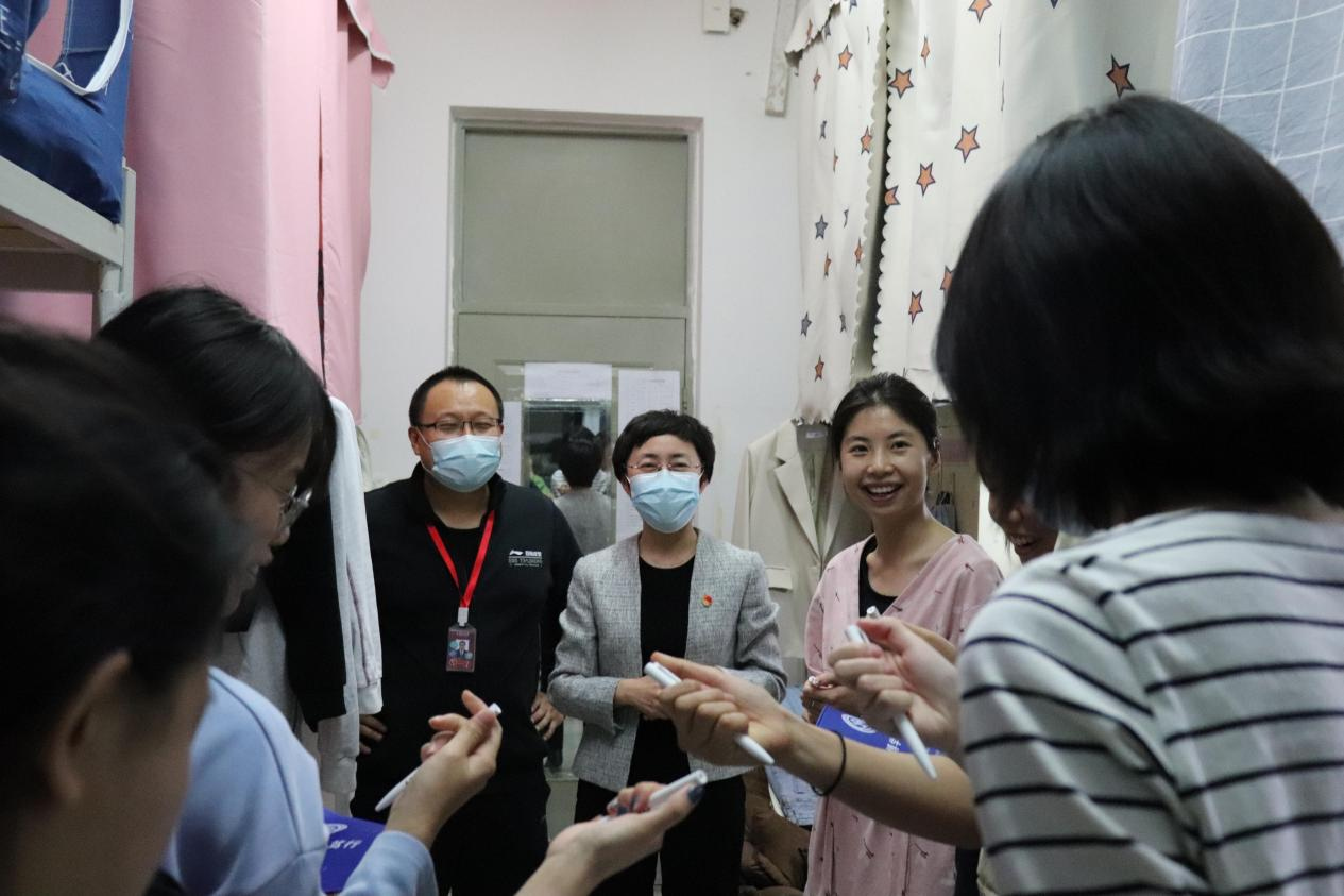 5月4日晚上,学院党委书记、副院长黄山杉与辅导员王利一同走进宿舍看望学生,送去节日礼物并结合学生手中的那支笔那句话交流思想、畅谈成长,关心关怀同学们当下的学习生活情况,引导大家支持和理解学校疫情防控工作,有任何诉求和问题及时与辅导员老师沟通,齐心协力共同守护校园平安稳定。同学们纷纷表示,非常喜欢这份青年节礼物,既温馨又有力量,一定会配合学校防疫工作,安排好自己的学习生活,同学之间相互关照、共克时艰,一起创造和迎接美好未来。