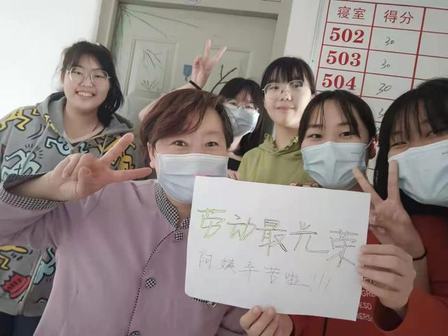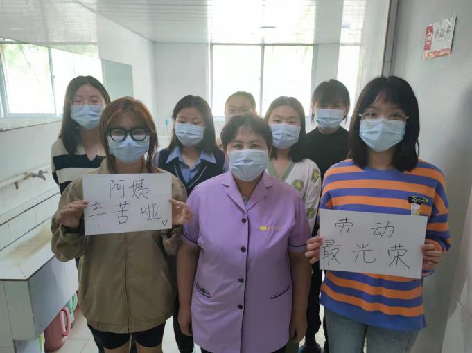 学生志愿者利用休息时间,持续开展清洁宿舍公共区域服务活动。活动过程中,同学们热情高涨,分工明确,竭力做到所见之处无盲区、无死角,在挥洒汗水和劳动创造中体会价值与快乐;充分展现了同学们不怕脏、不怕累,尊重劳动、热爱劳动的精神风貌。同时,志愿者们还给保洁工作人员带去由衷的节日问候。