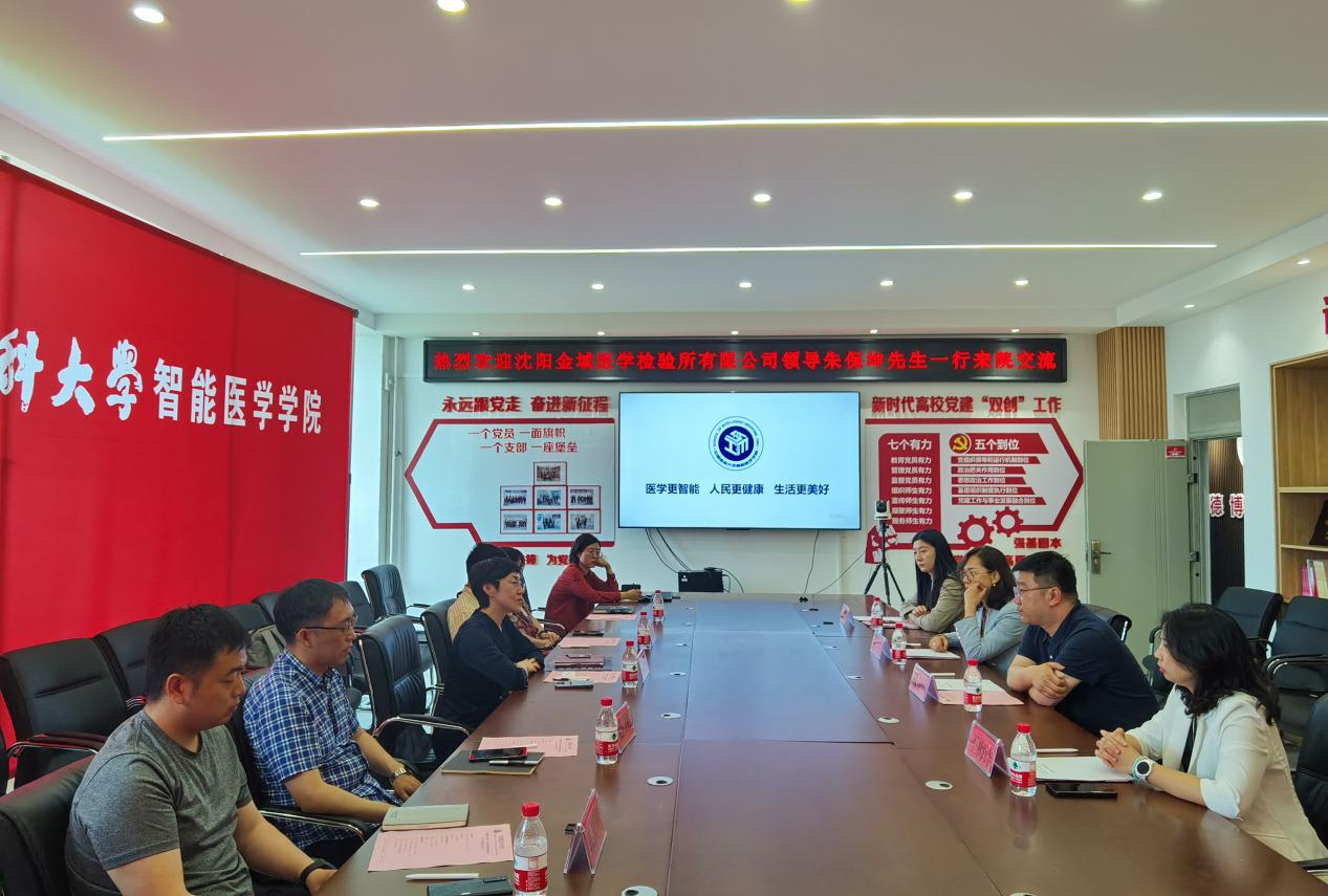 为深入学习贯彻落实党的二十大精神,扎实开展主题教育,有序推进事业发展,5月16日下午,智能医学学院在学院楼420会议室与沈阳金域医学检验所有限公司开展合作交流恳谈会。会议由学院党委书记黄山杉主持,部分教授专家、相关行政科室人员及毕业生代表参加了会议。