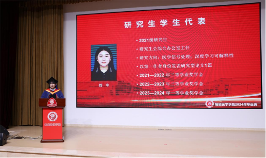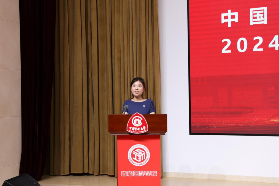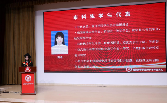 田芳硕宣读中国医科大学智能医学学院2024届辽宁省普通高等学校优秀毕业生、中国医科大学优秀毕业生的表彰文件。