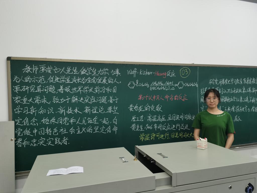 本次比赛贯穿师德专题教育主题,要求板书规定内容为习近平总书记关于师德师风的重要论述、“四史”学习资料、师德优秀典型先进事迹、新时代高校教师职业行为十项准则、人民教师誓词等;同时,设立加选内容,包括逻辑思路、方程推导、诗词、英文等,以充分展示各教研室教学特色。经过精心准备,全院近四分之一的教师提交了参赛作品,经过初评,10位选手进入决赛现场比拼环节。选手们在决赛现场随机抽题,临场沉着应变,精巧设计,流畅书写,展现在平时教学工作中的深厚积淀和扎实的教学基本功,展示出医大校园一线教师的板书风采。