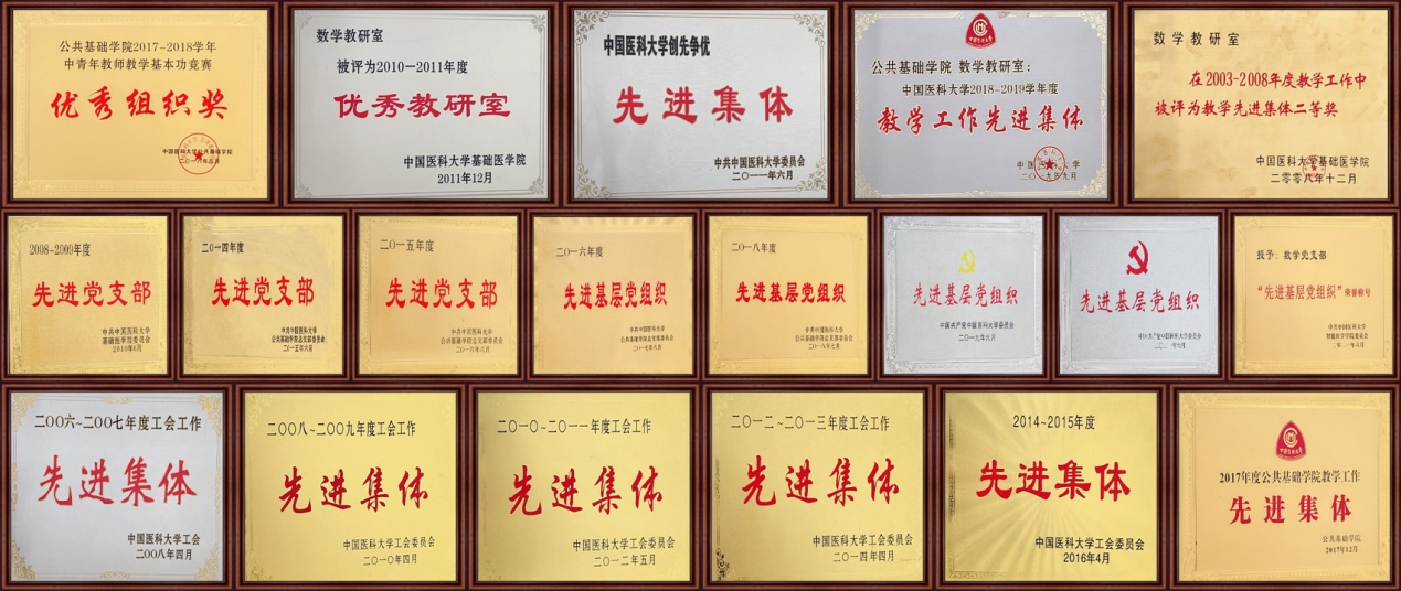 “中国医科大学教学比赛一等奖1人、二等奖2人、三等奖4人,校级先进个人11人次